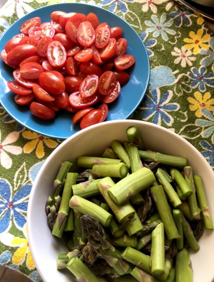 - 1 bunch of asparagus, ends trimmed and cut in to 1-inch pieces