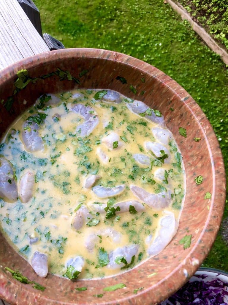 - Place the shrimp in the bowl with the marinade.