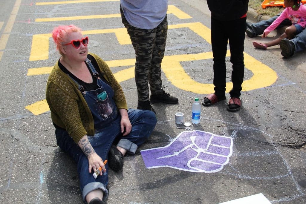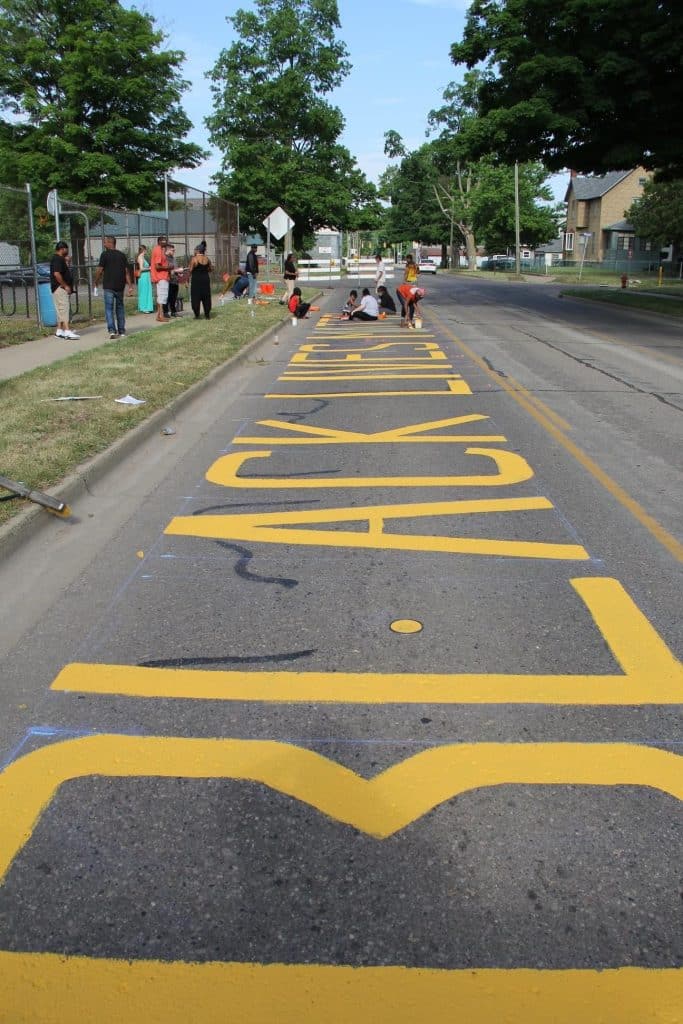 “Seeing a vision materialize is always something special,” Sayrie said. “Letia presented a beautiful three phase idea, beginning with the ‘Black Lives Matter’ sentiment, and eventually ending with ‘Standing in Solidarity.’ Seeing the completion of phase one of the mural is especially satisfying knowing just how many moving parts it took to get it all done. From the birth of the idea, to working with key decision makers within the city, artists, donors, to volunteers. It was a fantastic community effort.”