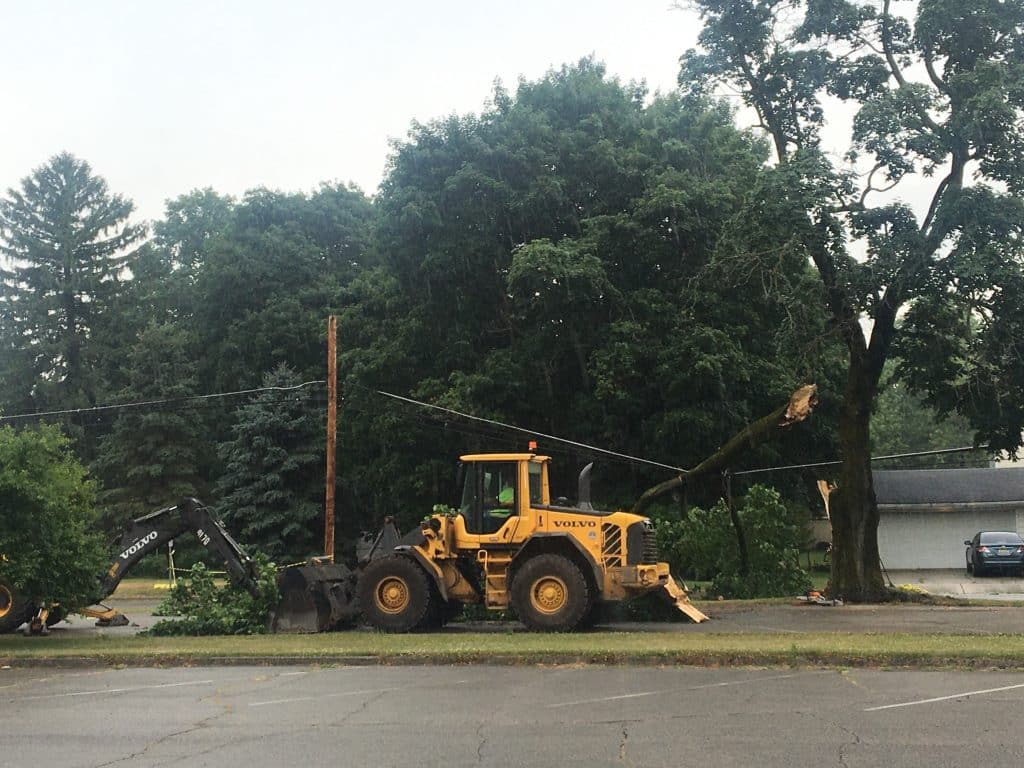 Crew members from the City of Three Rivers’ Department of Public Services worked to clear several large tree branches that fell on 8th Street Friday afternoon. The branches came from a large tree that stands between the sidewalk and the curb on 8th Street just south of Broadway Street. The branches landed on the street, sidewalk, The Huss Project parking lot, and overhead utility lines. One large branch rested on the overhead lines as the work took place.