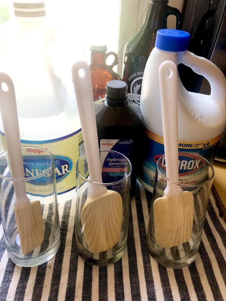 This week I’m coming at you with my first cleaning hack. If you are anything like me then I know that you have some rubber spatulas and spoons that have been hanging out in your kitchen tool drawer for years that are probably looking a little dingy and stained. I found lots of different solutions online to solve this but the three I chose are made out of things that you probably have in your house right now.