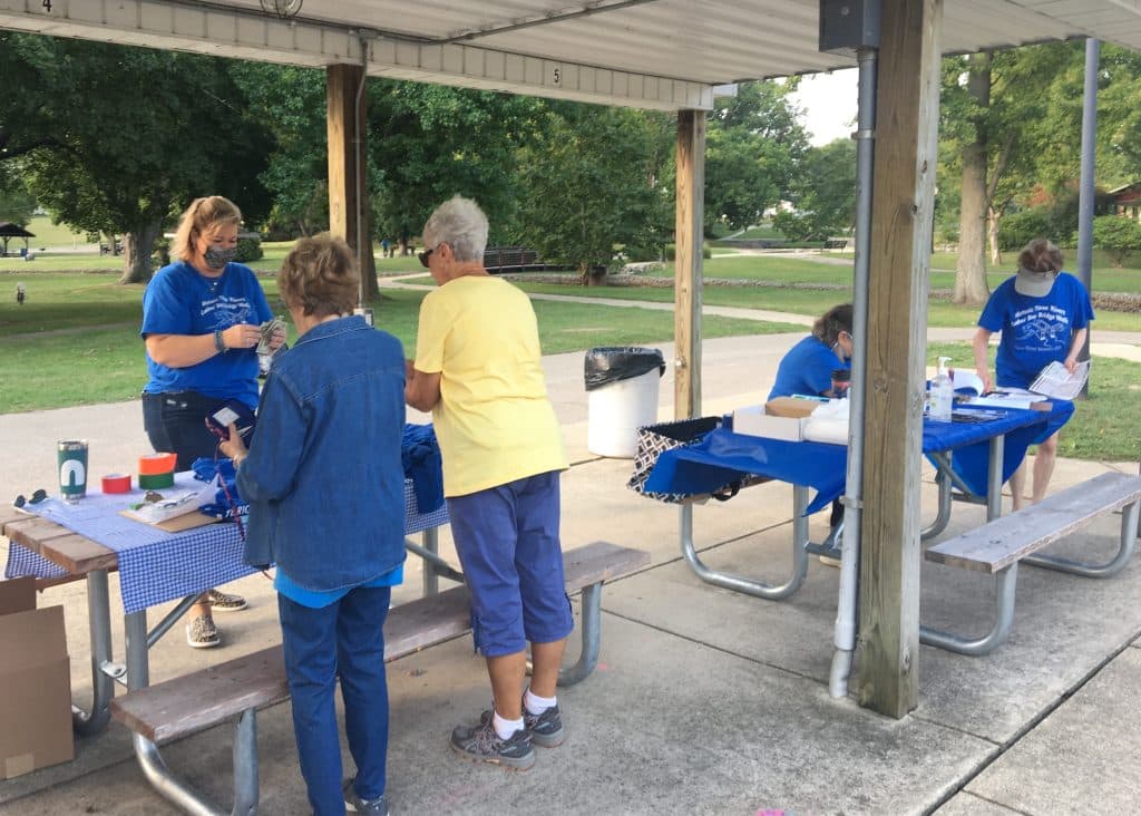 Woman’s Club members were on hand in the park to help register walkers, hand out free trail maps, bridge “passports,” and bottled water, and sell tee shirts. Additional volunteer “bridge tenders” waited along the various trail routes, handing out passport stickers for walkers to document their progress as they crossed each bridge. Volunteers also accepted donations to benefit a recent influx of cats and dogs under the care of St. Joseph County Animal Control and its partners.