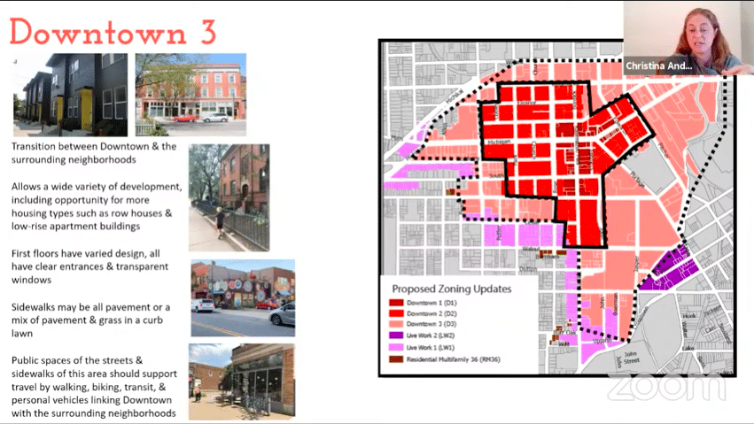 That notwithstanding, Anderson said some elements that are currently determined under the downtown design review process will remain there rather than being incorporated into the new zoning language. Those elements include things like signage, lighting, and streetscape elements. However, she said those items could be included in new code language in future updates.