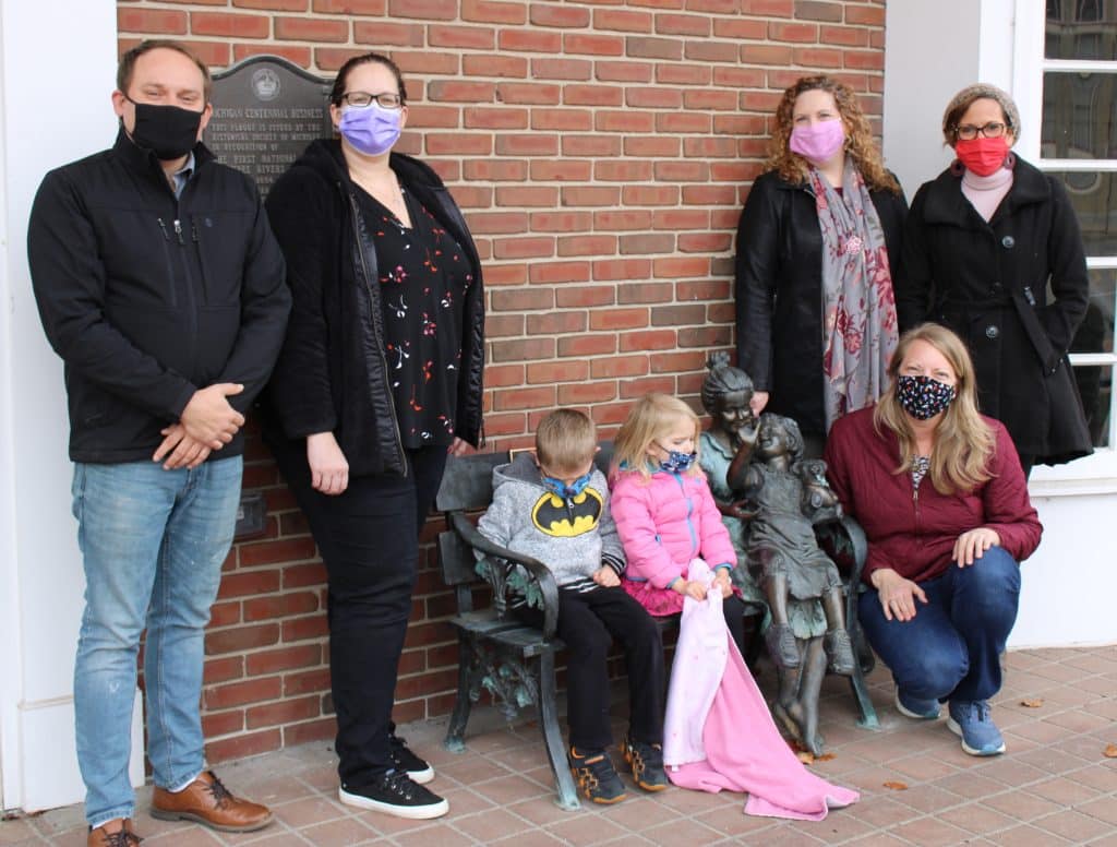 However, TRPL was finishing a multi-year renovation of the white-columned former Southern Michigan Bank and Trust building at Main and Moore Streets, and Design Committee volunteers felt a spot adjacent to its front door would be the perfect place for the bench. TRPL moved into the building in August from its previous facility on West Michigan Avenue, and has since opened to the public with capacity limitations and other pandemic precautions in place.