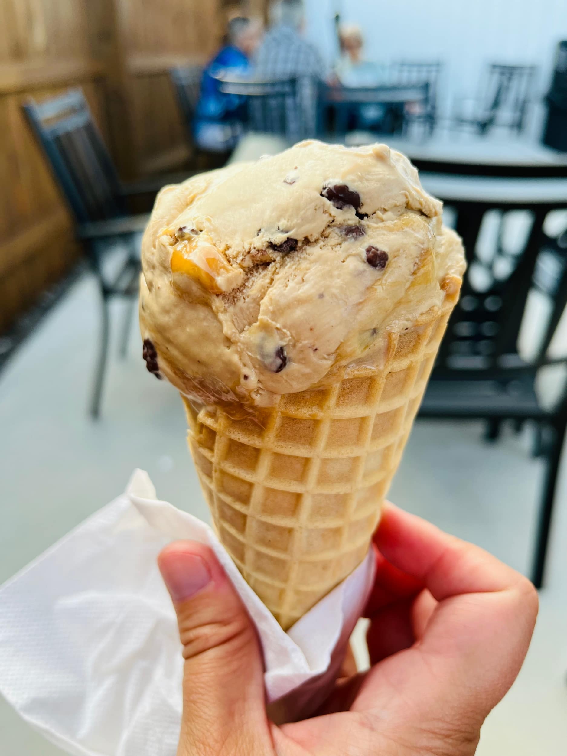 We took our cones out to the back patio of The Parlor and found seats beneath the strings of twinkling lights. We happily devoured our dessert as the sun began to set, the crickets began to chirp, and the heat of the day began to lift. With each lick, I confirmed what I believe I already knew in my heart the whole time: Americans might have fallen out of love with ice cream — but I absolutely have not.