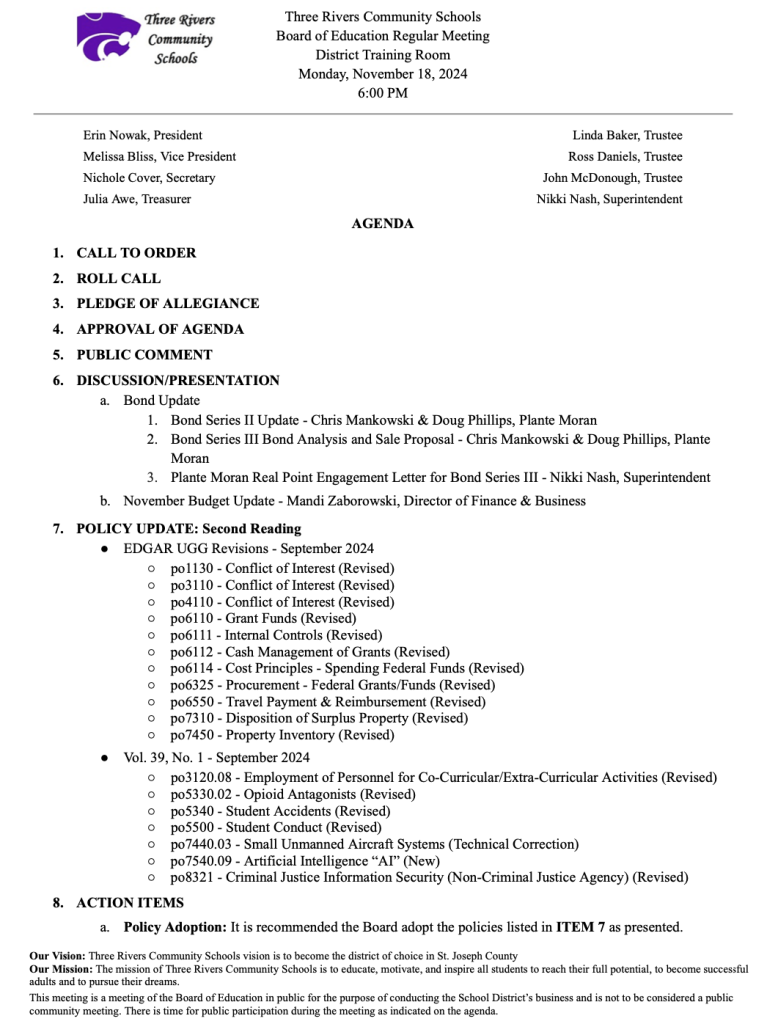 Local meeting primer: Three Rivers Community Schools Board of Education
