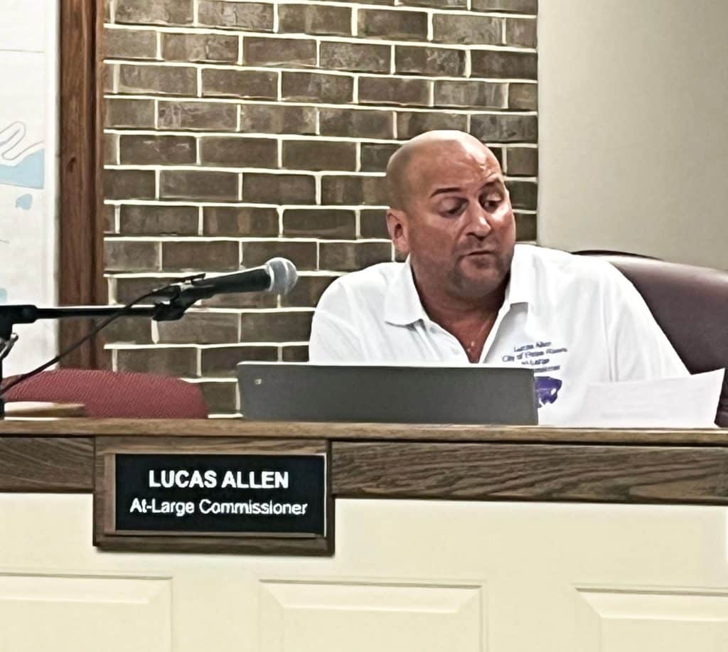 At-Large Commissioner Lucas Allen reads a written apology during a Three Rivers City Commission meeting in 2023. The apology came after Allen had several outbursts and made expletive-laden threats during a previous meeting. (Watershed Voice file photo)