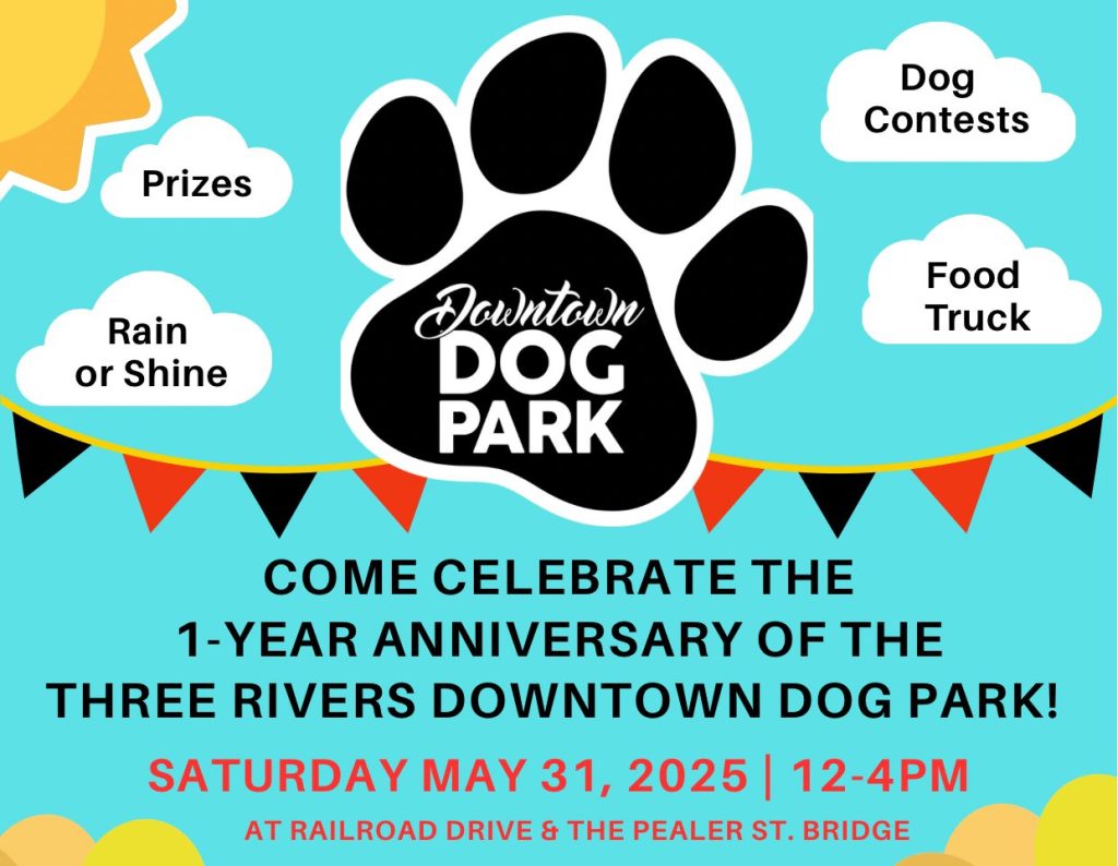 The Three Rivers Downtown Dog Park will celebrate its one-year anniversary with a free, family-friendly event this Saturday, May 31, from noon to 4 p.m.