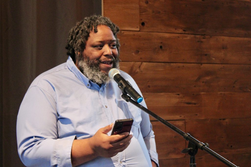 Mitchie Moore was the first musical guest bringing a high-energy set, he was followed by Zach “Lucky” Fultz, whose soulful guitar and vulnerable lyrics offered a glimpse into his journey. He performed a couple songs from his debut album, Riverside Drive, including the title song.