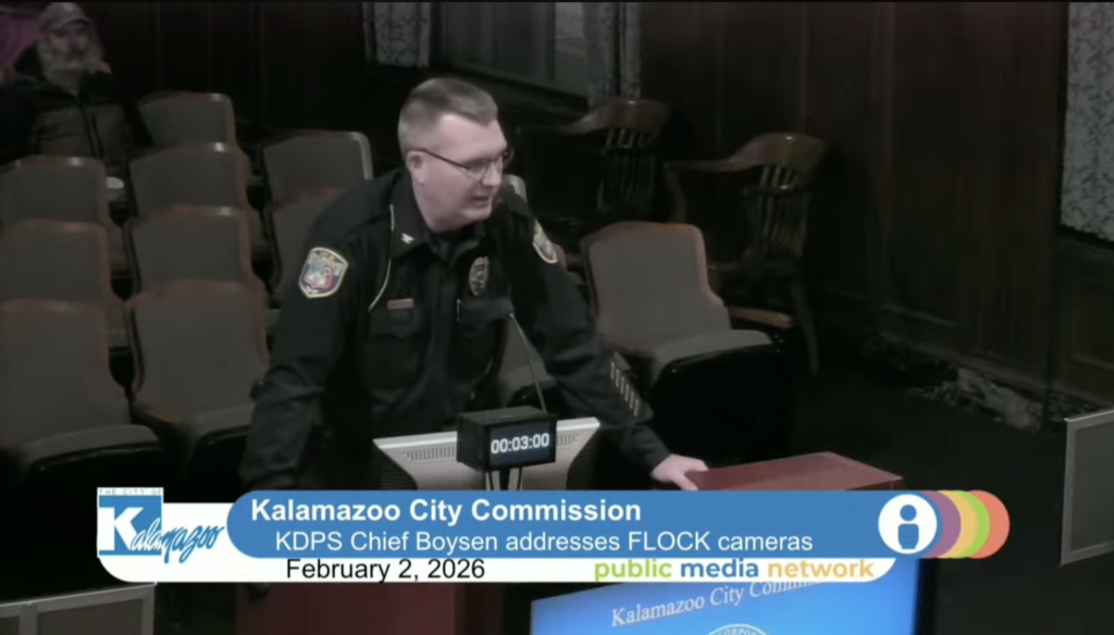 The Kalamazoo City Commission met Monday, February 2, for a regular business meeting. While the agenda included no new business items, several residents used public comment to raise concerns about a renters’ rights ballot initiative and the city’s use of Flock Safety license plate reader cameras.
