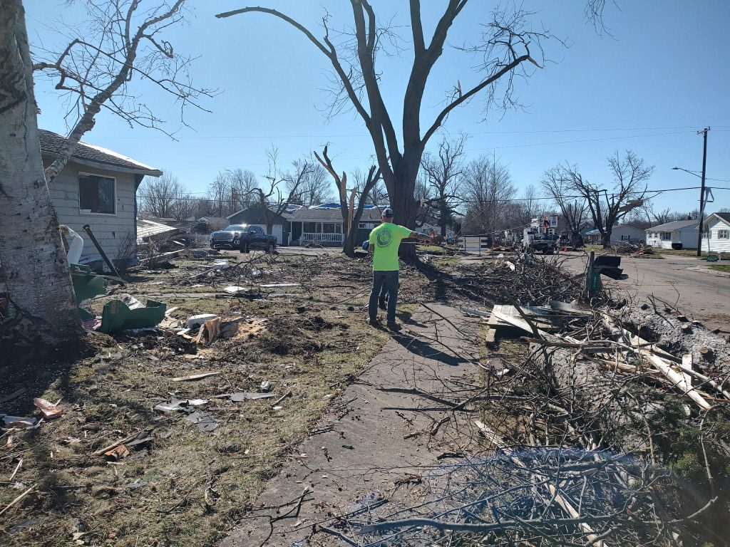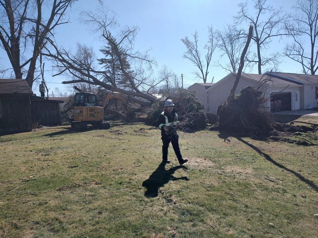 ‘We heard our neighbors needed help’: Local electricians union aids cleanup effort following Three Rivers tornado