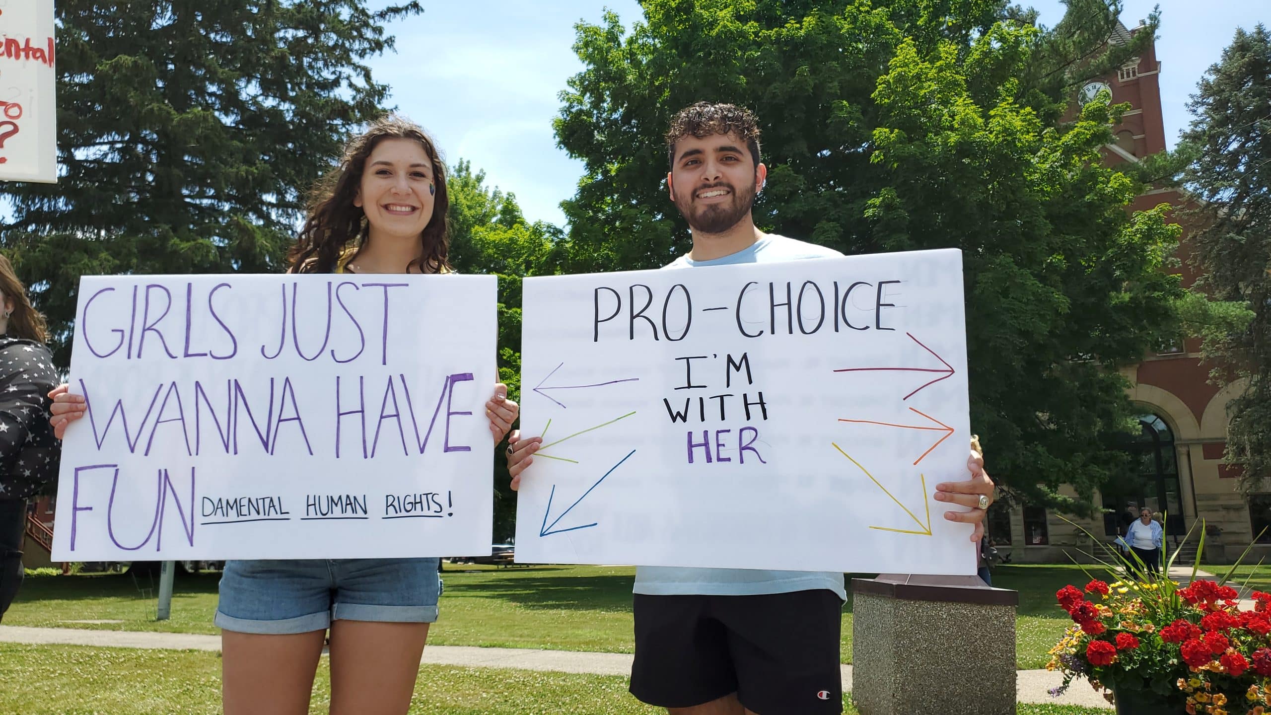 Approximately 300 people gathered in front of the St. Joseph County Courthouse Saturday to protest the U.S. Supreme Court’s decision to overturn Roe v. Wade, which had previously established abortion as a constitutional right.